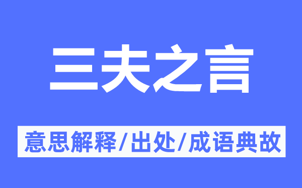 成语,有固定的结构形式和固定的说法,表示一定的意义,为了帮助大家了解成语三夫之言是什么意思?下面准备了三夫之言的意思解释、出处及成语典故,希望可以帮助到大家。![]() 三夫之言的意思解释 ▶泛指经过多人传播的流言。 三夫之言的拼音:【sān fū zhī yán】 三夫之言的出处 ▶《战国策·秦策二》:“昔者曾子处费,费人有与曾子同名族者而杀人,人告曾子母曰:‘曾参杀人。’曾子母曰:‘吾子不杀人。’织自若。有顷焉,人又曰:‘曾参杀人。’其母尚织自若。顷之,一人又告之曰:‘曾参杀人。’其母惧……” 三夫之言的近义词 ▶三夫之对 三夫之言成语接龙参考 ▶三夫之言→言出祸从→从容应对→对牛弹琴→琴瑟失调→调舌弄唇→唇枪舌剑→剑态箫心→心灵性巧→巧发奇中→中庸之道→道学先生→生气勃勃→勃然变色→色若死灰→灰容土貌→貌合行离→离乡背土 每日成语推荐 三夫之言的意思解释就为大家分享到这里,如果想了解更多成语的意思解释、成语故事、成语典故、成语接龙、看图猜成语等内容,请大家访问成语大全栏目。 推荐阅读: 1、踏踏实实的意思解释 2、天经地义的意思解释 3、痛痛快快是什么意思? 4、同心协力是什么意思? 5、同病相怜的出处及成语典故 6、听天由命的出处及成语典故 |