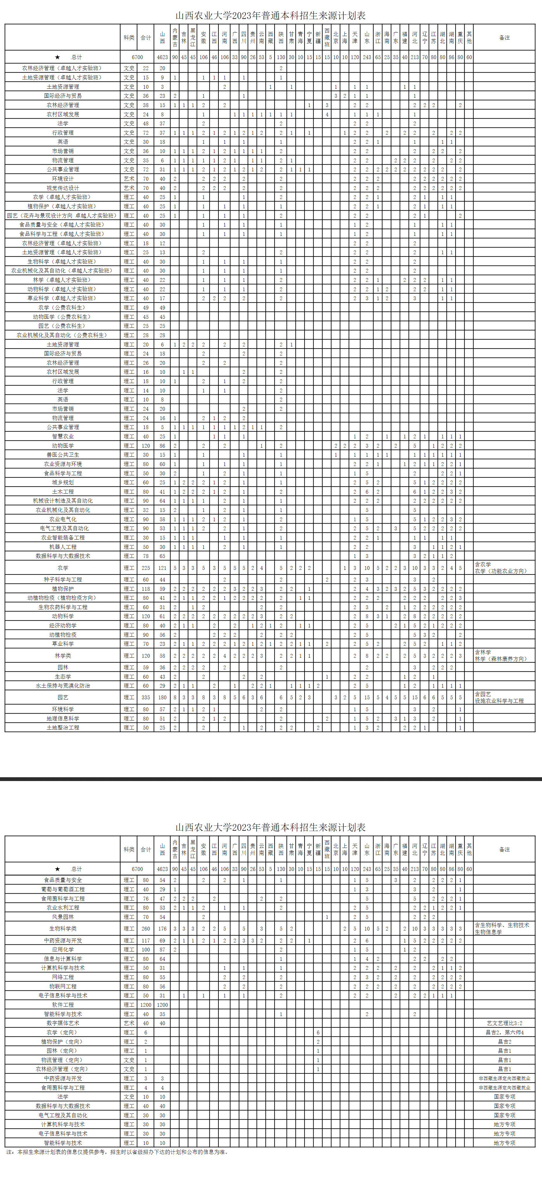 2023年山西农业大学各省招生计划及各专业招生人数就为大家介绍到这里,如果想了解山西农业大学录取分数线、山西农业大学排名情况、山西农业大学王牌专业等内容,请点击访问:大学栏目。
