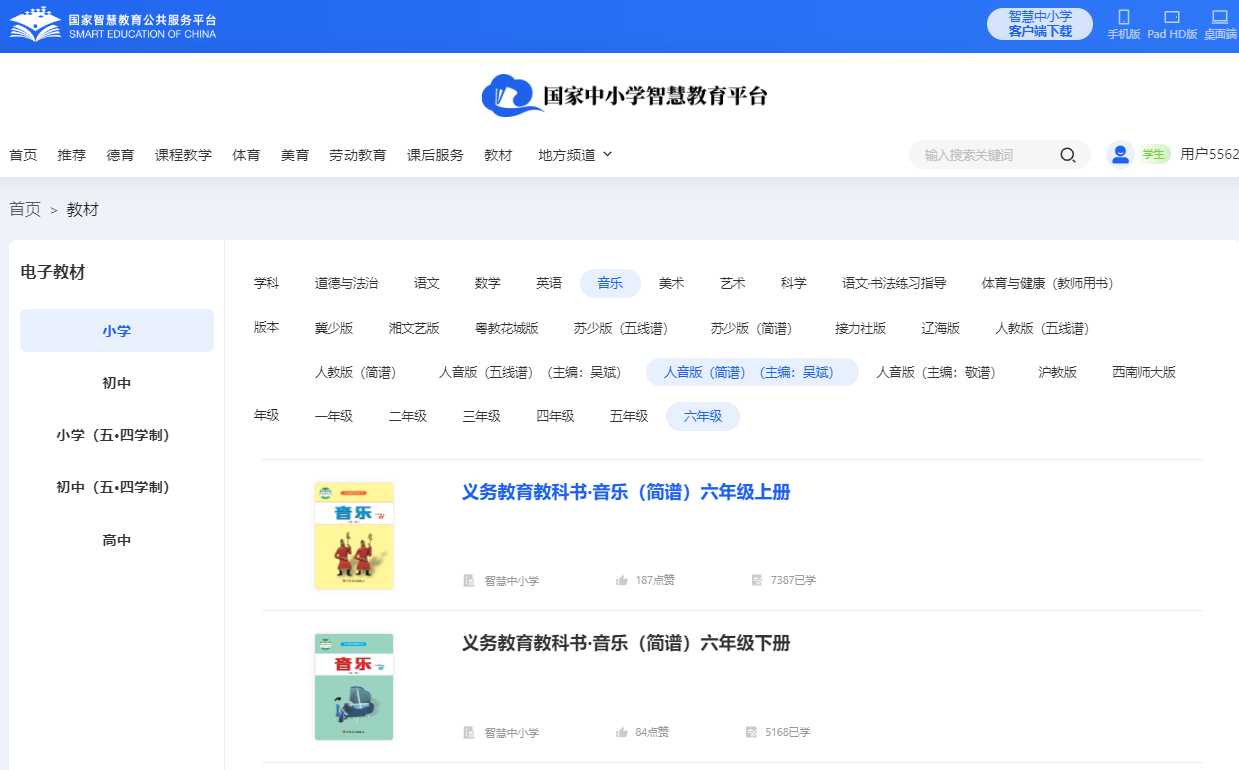 在学习的过程中,有人会用到人音版六年级上册音乐(简谱)电子课本,为方便大家查找,下面整理了人音版六年级上册音乐(简谱)电子课本教材,大家只需按照下方步骤操作,即可查看完整、高清版的电子教材,希望对大家有所帮助。![]() 《人音版六年级上册音乐(简谱)》电子课本 打开国家中小学智慧教育平台网站的教材栏目(网址:https://basic.smartedu.cn/tchMaterial),登陆账号,按照下方步骤操作,即可查看人音版六年级上册音乐(简谱)教材电子版。 具体操作步骤 ▶1、打开:https://basic.smartedu.cn/tchMaterial,并登录。 ▶2、左侧导航栏选择“小学” ▶3、学科选择“音乐” ▶4、版本选择“人音版” ▶5、年级选择“六年级”,这时,就会出现对应的课本,点击进去,即可查看。 具体操作如下图所示: ![]() 人音版六年级上册音乐(简谱)电子课本简介 人音版六年级上册音乐(简谱)教科书,以审美为中心,以音乐文化为主线,以音乐学科为基点,加强实践与创造,加强综合与渗透,把激发学生学习音乐的兴趣贯穿始终。使学生形成健康的音乐审美观念,以及必要的音乐审美能力。 如何将教材保存到手机上? 点击了解▶电子课本保存到手机上的方法 人音版六年级上册音乐(简谱)电子课本教材就为大家介绍到这里,想了解人音版其他年级、学科的电子版教材,请点击电子课本栏目,如果发现不妥之处,请及时指正,感谢大家的理解与支持。 推荐阅读: ➥人教版1-6年级上册数学电子课本教材大全 ➥小学英语教材全套版本 ➥初中数学教材有哪些版本? ➥新教材高中英语电子课本版本介绍 ➥教材是如何装订的? ➥电子课本打印出来不清楚怎么办?? |