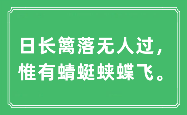 古诗词通过优美的文字与韵律,可以让我们与先贤对话、与历史沟通,下面为大家整理了“日长篱落无人过,惟有蜻蜓蛱蝶飞。”的译文,想了解“日长篱落无人过,惟有蜻蜓蛱蝶飞。”是什么意思、出处及原文翻译,可阅读本文,希望对大家有所帮助。![]() “日长篱落无人过,惟有蜻蜓蛱蝶飞。”是什么意思? “日长篱落无人过,惟有蜻蜓蛱蝶飞。”的意思是:正午时分,太阳高高在上,篱笆影子随着太阳升高越来越短,没有人经过。四周静悄悄的,只有蜻蜓和蝴蝶飞过。 “日长篱落无人过,惟有蜻蜓蛱蝶飞。”的出处 该句出自《夏日田园杂兴》,全诗如下:
