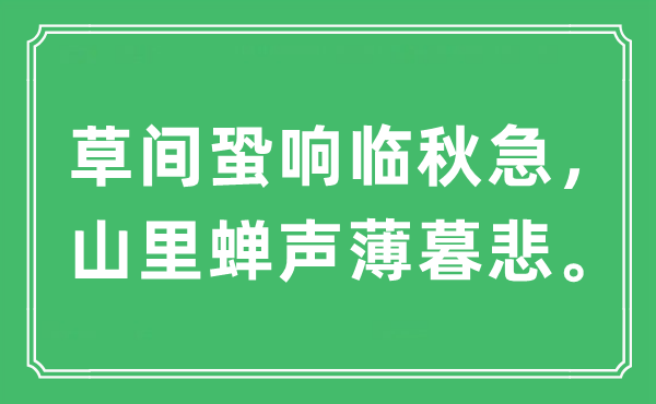 古诗词通过优美的文字与韵律,可以让我们与先贤对话、与历史沟通,下面为大家整理了“草间蛩响临秋急,山里蝉声薄暮悲”的译文,想了解“草间蛩响临秋急,山里蝉声薄暮悲”是什么意思、出处及原文翻译,可阅读本文,希望对大家有所帮助。![]() “草间蛩响临秋急,山里蝉声薄暮悲”是什么意思? “草间蛩响临秋急,山里蝉声薄暮悲”的意思是:逢临秋季草堂边蟋蟀叫得更急,时近黄昏深山里蝉鸣徒增悲意。 “草间蛩响临秋急,山里蝉声薄暮悲”的出处 该句出自《早秋山中作》,全诗如下: