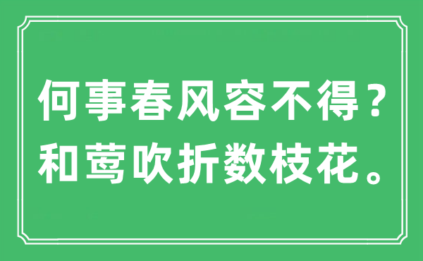 古诗词通过优美的文字与韵律,可以让我们与先贤对话、与历史沟通,下面为大家整理了“何事春风容不得?和莺吹折数枝花”的译文,想了解“何事春风容不得?和莺吹折数枝花”是什么意思、出处及原文翻译,可阅读本文,希望对大家有所帮助。![]() “何事春风容不得?和莺吹折数枝花”是什么意思? “何事春风容不得?和莺吹折数枝花”的意思是:为什么春风竟然容不得这些,惊走了莺黄又吹折数枝花。 “何事春风容不得?和莺吹折数枝花”的出处 该句出自《春居杂兴》,全诗如下: