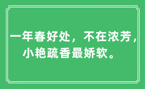 古诗词通过优美的文字与韵律,可以让我们与先贤对话、与历史沟通,下面为大家整理了“一年春好处,不在浓芳,小艳疏香最娇软。”的译文,想了解“一年春好处,不在浓芳,小艳疏香最娇软。”是什么意思、出处及原文翻译,可阅读本文,希望对大家有所帮助。![]() “一年春好处,不在浓芳,小艳疏香最娇软。”是什么意思? “一年春好处,不在浓芳,小艳疏香最娇软。”的意思是:一年之中,最美好的春天不是花团锦簇的时候,早春梅花暗香浮动、杨柳依依的景致才是最娇媚柔和的。 “一年春好处,不在浓芳,小艳疏香最娇软。”的出处 该句出自《洞仙歌》,全诗如下: