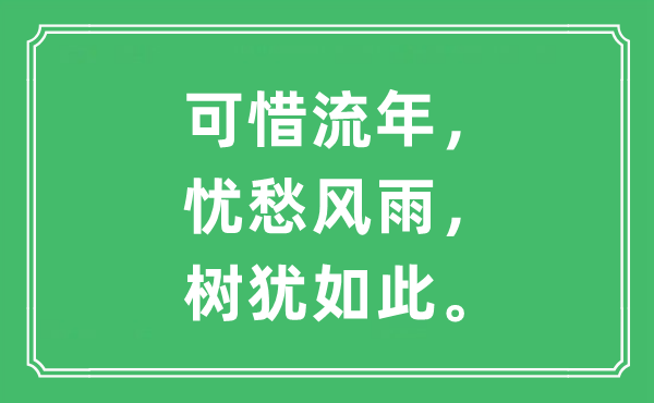 古诗词通过优美的文字与韵律,可以让我们与先贤对话、与历史沟通,下面为大家整理了“可惜流年,忧愁风雨,树犹如此”的译文,想了解“可惜流年,忧愁风雨,树犹如此”是什么意思、出处及原文翻译,可阅读本文,希望对大家有所帮助。![]() “可惜流年,忧愁风雨,树犹如此”是什么意思? “可惜流年,忧愁风雨,树犹如此”的意思是:。可惜大好岁月空流逝,徒然为风雨飘摇的国事忧愁,树都会愁老人又怎能不老垂? “可惜流年,忧愁风雨,树犹如此”的出处 该句出自《水龙吟·登建康赏心亭》,全诗如下: