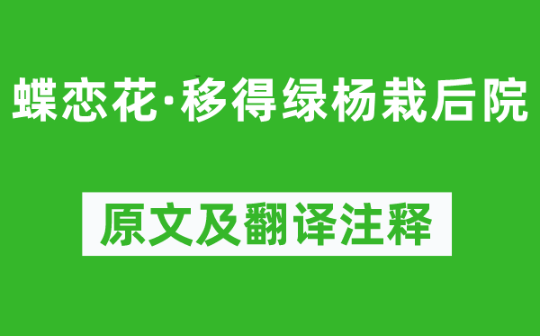 古诗词经过时间沉淀、岁月更迭,愈发让诗意更加的浓厚,下面为大家整理了张先《蝶恋花·移得绿杨栽后院》原文及翻译注释,让我们一起来领略诗词的魅力与情感,希望对大家有所帮助。![]() 《蝶恋花·移得绿杨栽后院》原文