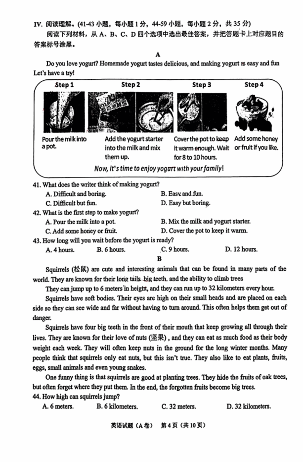 2023年重庆中考英语试卷真题及答案(含2022-2023年历年)(4)