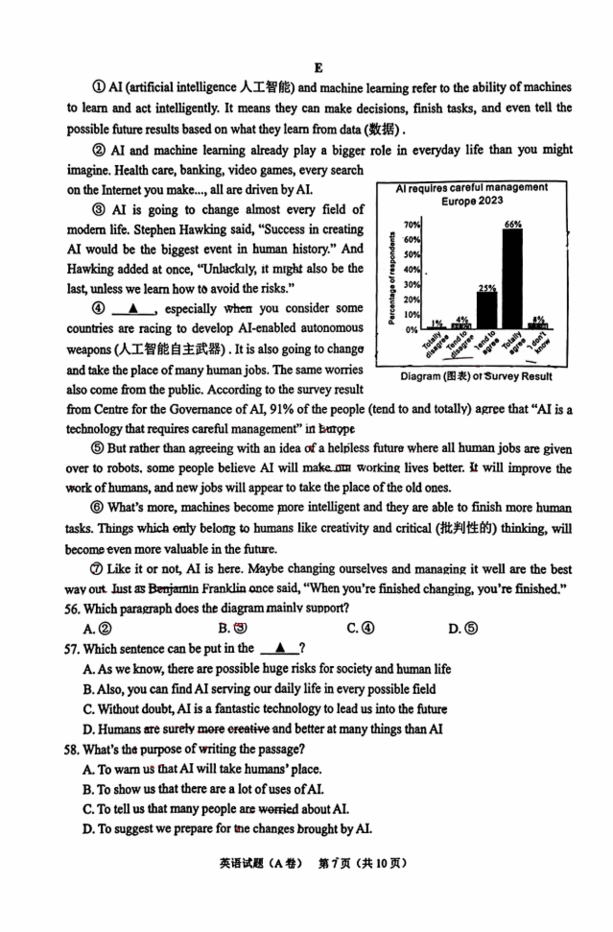 2023年重庆中考英语试卷真题及答案(含2022-2023年历年)(7)