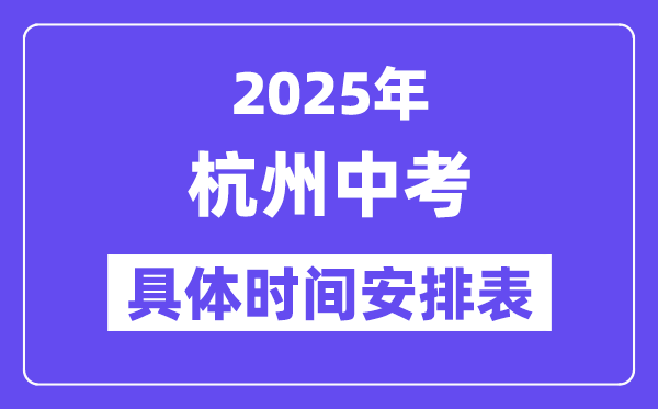 2025年杭州市初中学业水平考试(中考)于6月22日—23日左右进行,下面为大家整理了杭州中考时间2025年时间表,详细介绍了2025年杭州中考是几月几号开始,具体时间安排请以官方最终公告为准。![]() 一、2025年杭州中考时间 2025年杭州中考时间:6月21日—22日(已公布) 二、杭州中考各科目具体安排 ![]() 三、杭州中考总分是多少分? 从2024年起,中考的语文、数学、英语、科学、社会等5门科目将实行省级统一命题,卷面总分值为620分。中考总分650分,包括文化课620分和体育30分。 想要想获取更多关于2025年杭州中考真题、中考分数线、试卷及答案等资讯,请访问: >>>中考专题页面 |